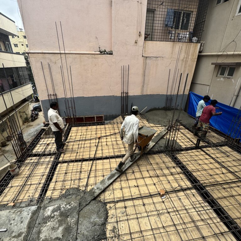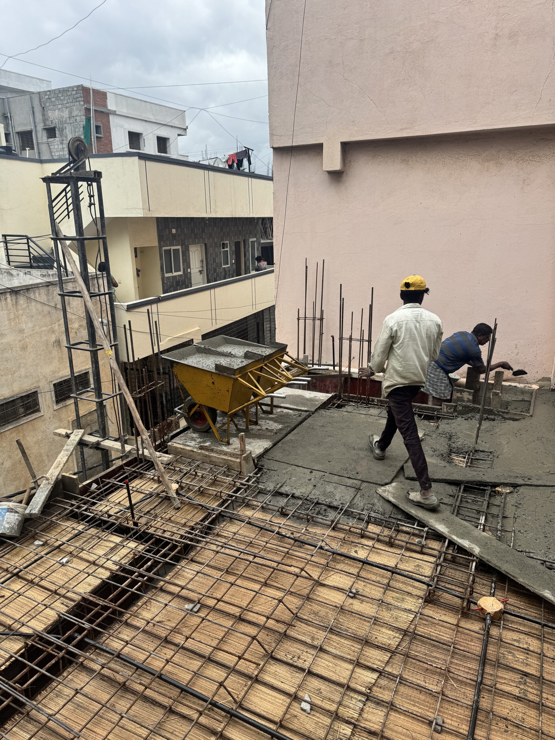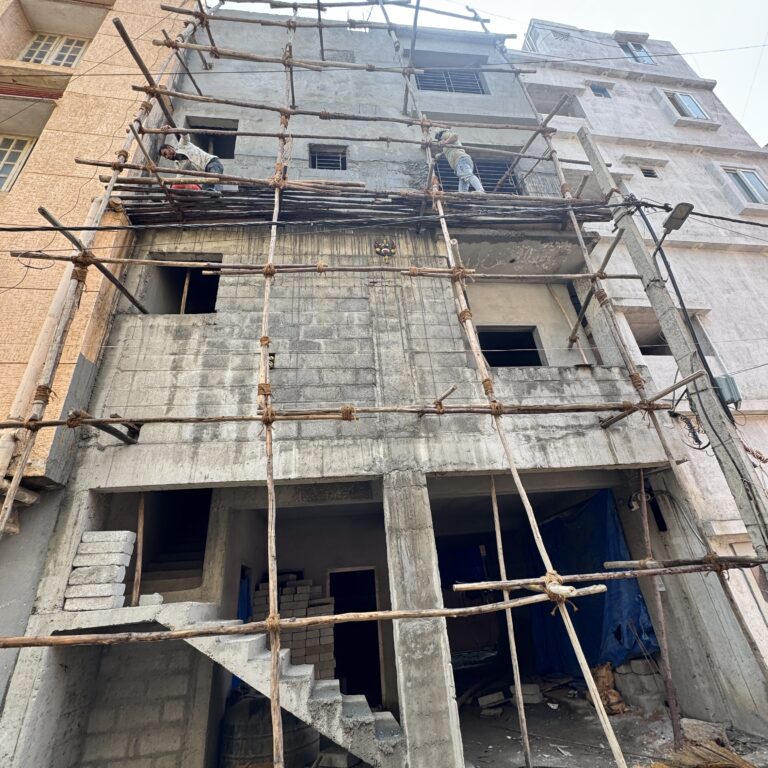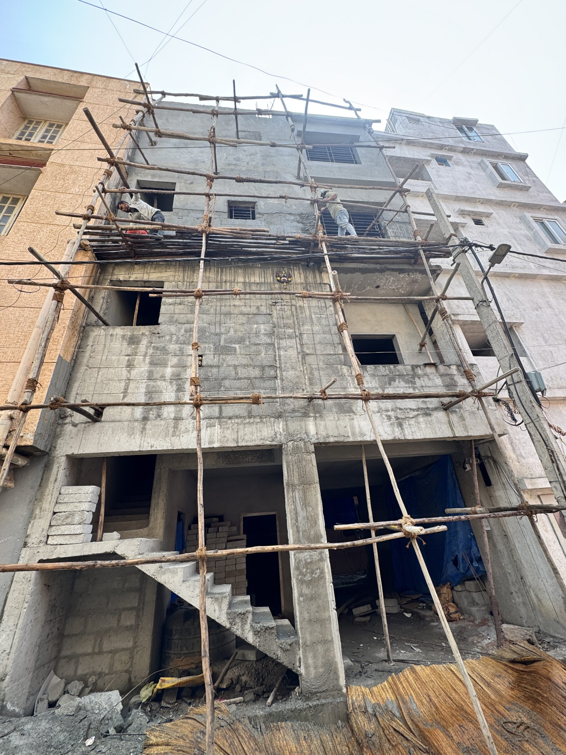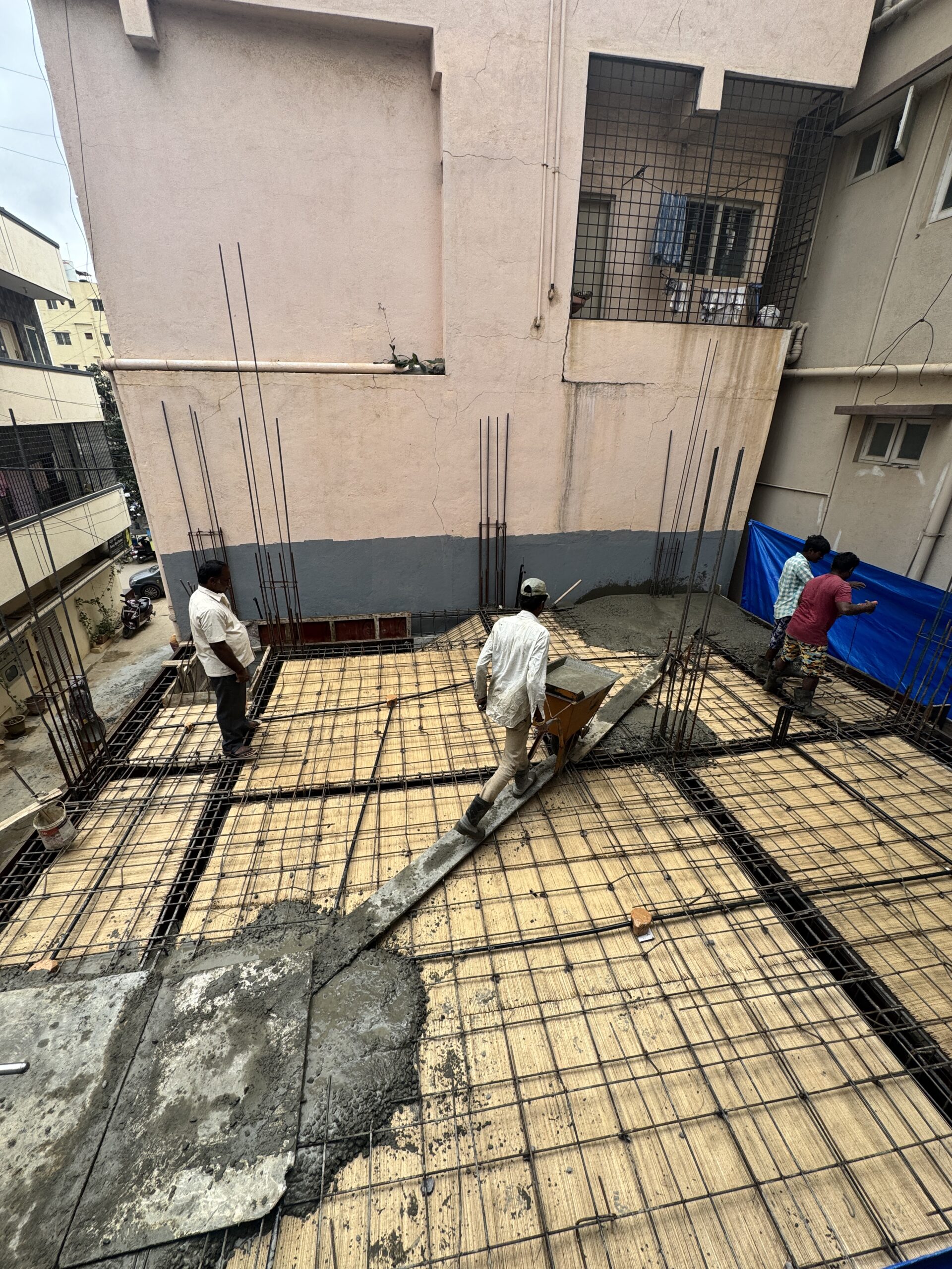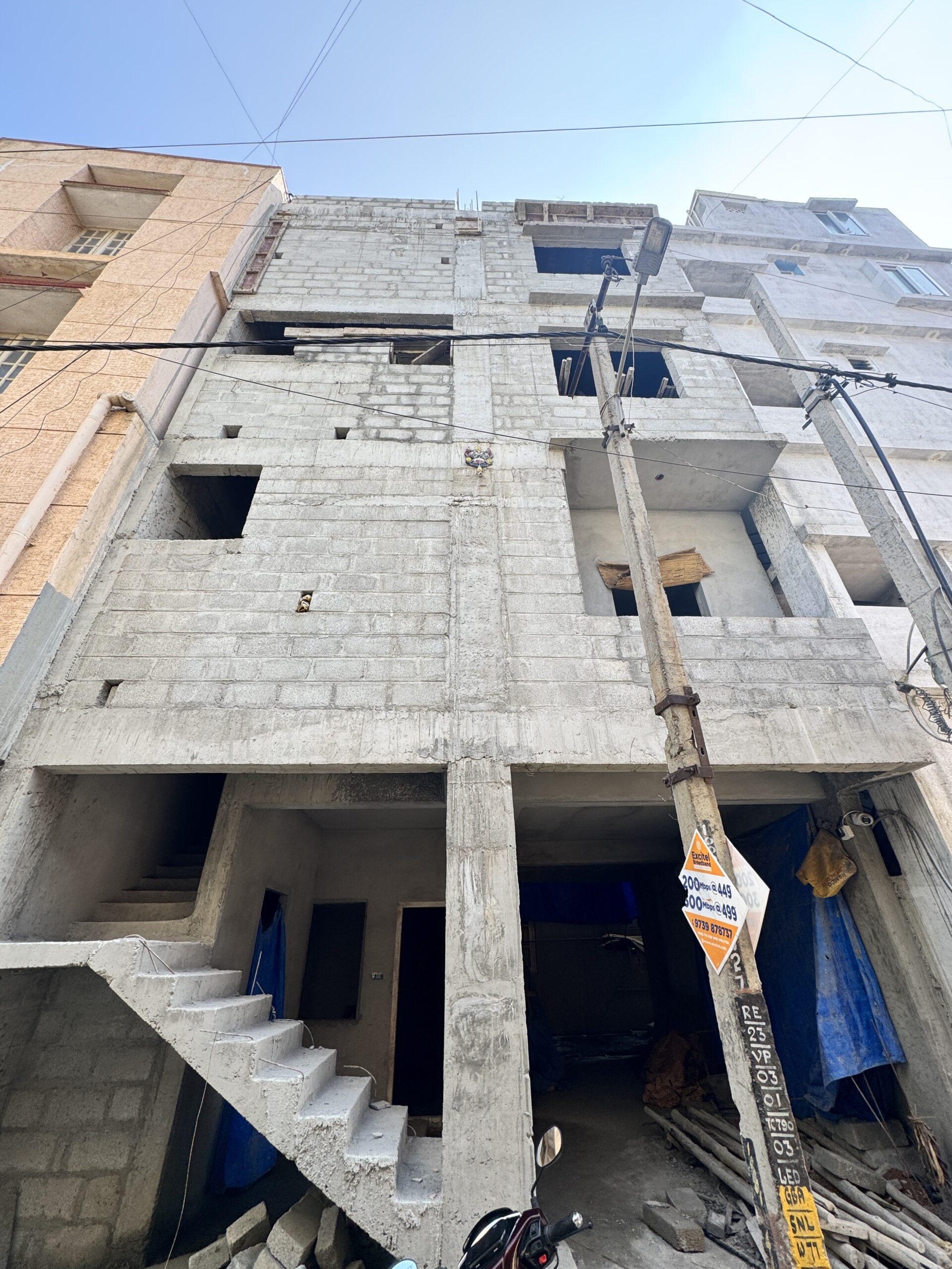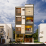 Project description :A contemporary G+3 residence designed with a strong vertical emphasis, this façade showcases a refined balance of clean lines, textured surfaces, and warm accents. The composition of staggered volumes and framed elements creates a dynamic yet harmonious elevation. The design maximizes natural light and ventilation through well-placed openings and balconies, while subtle material contrasts add depth and character. Warm lighting highlights the architectural features, enhancing the visual appeal during the evening